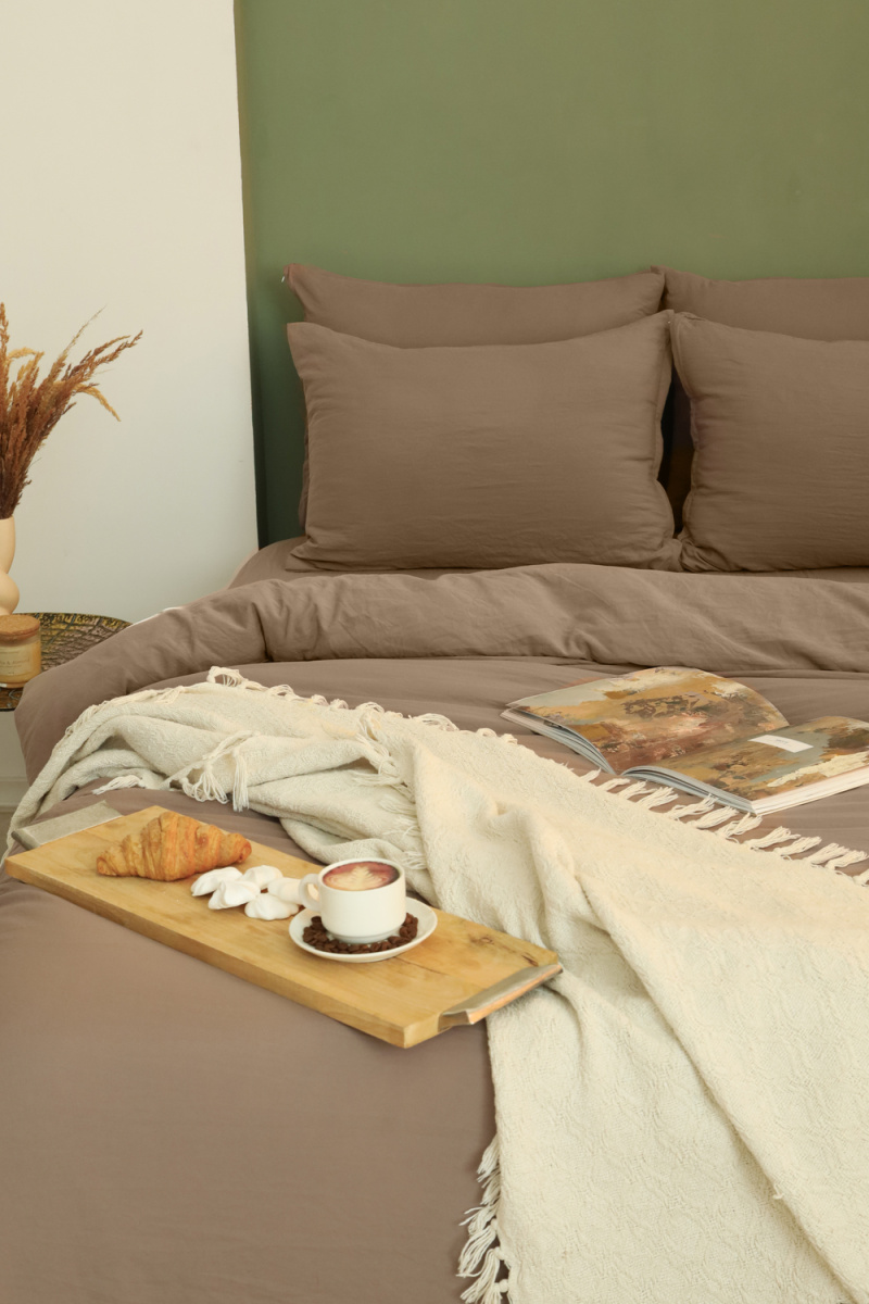 Ищете качественное и стильное постельное белье для дома своей спальни? Полутороспальное постельное белье изготовлено из микрофибры и 100 % полиэстера станет отличным выбором. Эти материалы обеспечивают мягкость, бархатистость и приятный «БРАШ» эффект. Такое постельное белье мягкое и не образует катышки, его не нужно гладить – просто наслаждайтесь комфортом и свежестью каждый день! Микрофибра отличается такими достоинствами как: 1) легко стирается, быстро сохнет, не линяет 2) воздухопроницаемая 3) гипоаллергенная 4)не мнется 5) приятная на ощупь 6) имеет продолжительный срок службы. Наш КПБ имеет плотность 95гр/м2, что является очень хорошим показателем для такой ткани как микрофибра. Постельное белье 1,5 спальное включает в себя такие постельные принадлежности, как пододеяльник 145х215 см, простынь 150х215 и 2 наволочки 50х70, которые выполнены в пастельных тонах. Потайные молнии на наволочках и пододеяльнике делают комплект более удобным и практичным. Цвет комплекта постельного белья - однотонный. Благодаря