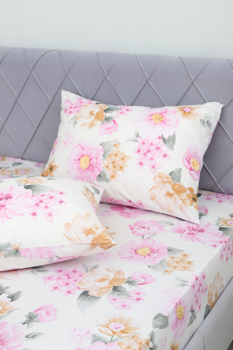 Простыня на резинке поплин Цветочный рай