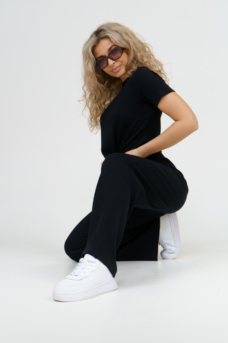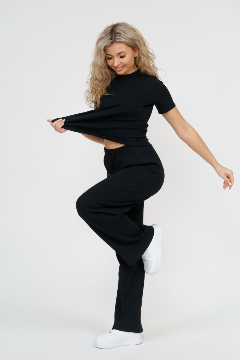 Модный костюм ТРОЙКА выполнен из высококачественного материала - лапша, который в свою очередь обладает большим количеством положительных качеств: эластичность, гигроскопичность, износостойкость, комфорт, не линяет и не выгорает. А фактура ткани визуально вытягивает силуэт и делает фигуру стройнее. Комплект состоит из удлинённого кроп-топа, брюк и шорт. Лёгкие прямые брюки с высокой посадкой в стиле палаццо из красивого материала акцентируют достоинства, а пояс-резинка, выполненный на специализированной поясной машине, не сдавливает талию, поэтому подойдёт также для беременных девушек. Шорты выполнены в свободном стиле на резинке, что идеально подойдёт для дома, отдыха и спорта. Удлинённый кроп-топ в свою очередь - это идеальный вариант на каждый день, который вы можете носить сочетая с другими вещами, создавая свой идеальный образ. А различные вариации верха с брюками - это отличный вариант для создания праздничного образа. Костюм ТРОЙКА сделает образ женщин, девушек, студентов и подростков ярким и любимым к